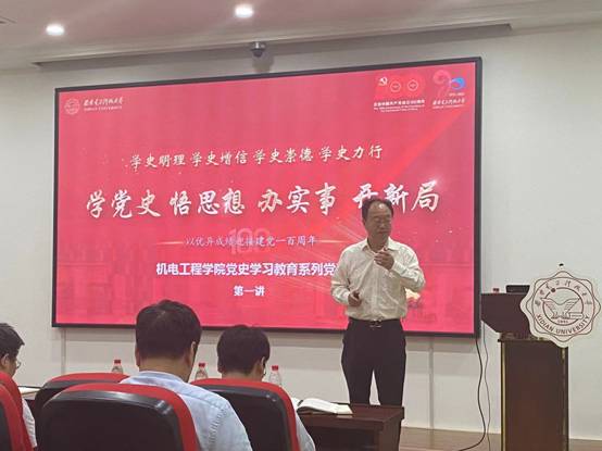 随后,梁玮以《从建党百年辉煌史中---感悟党的集中统一领导和“两个维护”的重要意义》为题进行了讲授,同时这也是学院党政班子成员讲系列党课的首讲。他分享了自己党史学习的心得,并指出希望学院师生可以将党史学习教育与日常工作、学习相融合,主动将学习教育成果转化为攻坚克难、干事创业的强大动力,真正做到学以致用,推动党史学习教育往深处走。