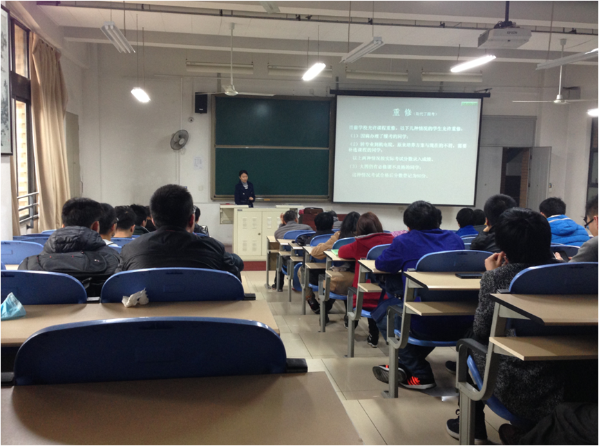 于11月30日为挂科超过12学分的学生做了一次学籍管理相关规定的讲座。学院办公室人员和全体本科生辅导员参加了本次讲座,由金星娱乐城