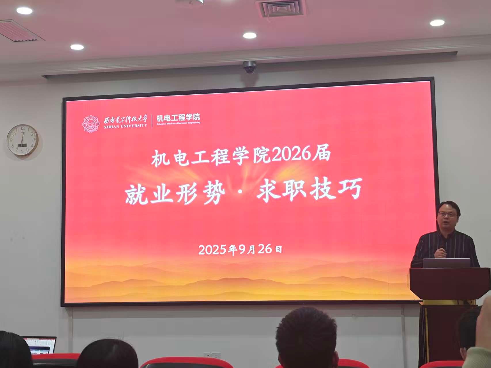 最后,陈武做了总结发言。他表示西电毕业生质量并未下降,与往届相比不存在能力差距,当前求职面临的压力,本质是严峻就业大环境下,毕业生薪资期待与企业招聘条件之间出现的现实落差。他向同学们提出明确要求:要客观为自身求职付出打分,反思是否真正投入足够努力,既要深入了解自我与目标企业,更要牢牢抓住“九月金月、十月银月”的秋招关键期,主动通过各类场景锻炼沟通能力,以充分的准备提升求职竞争力,找到适配自己的职业平台。