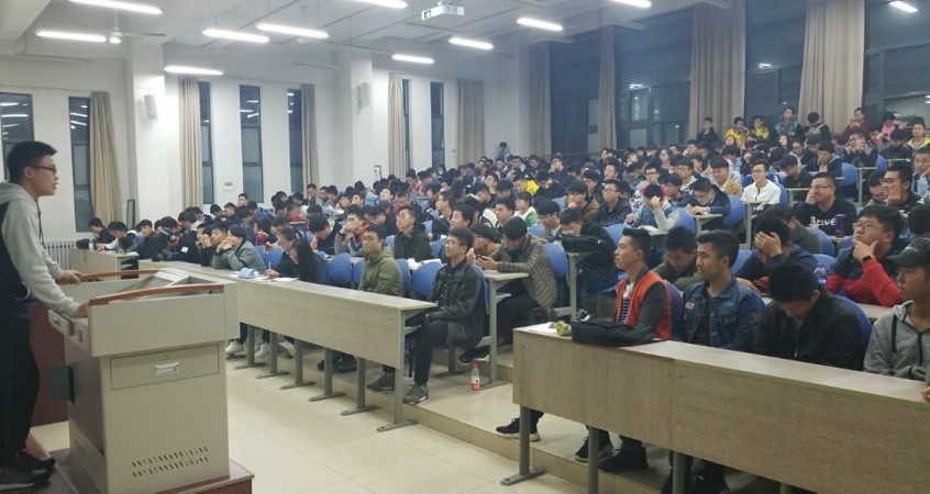 2014级机械设计制造及其自动化系的吉斌同学、秦亮同学和电气工程及其自动化系的江伟斌同学,来为新生普及硕士推免相关事宜。