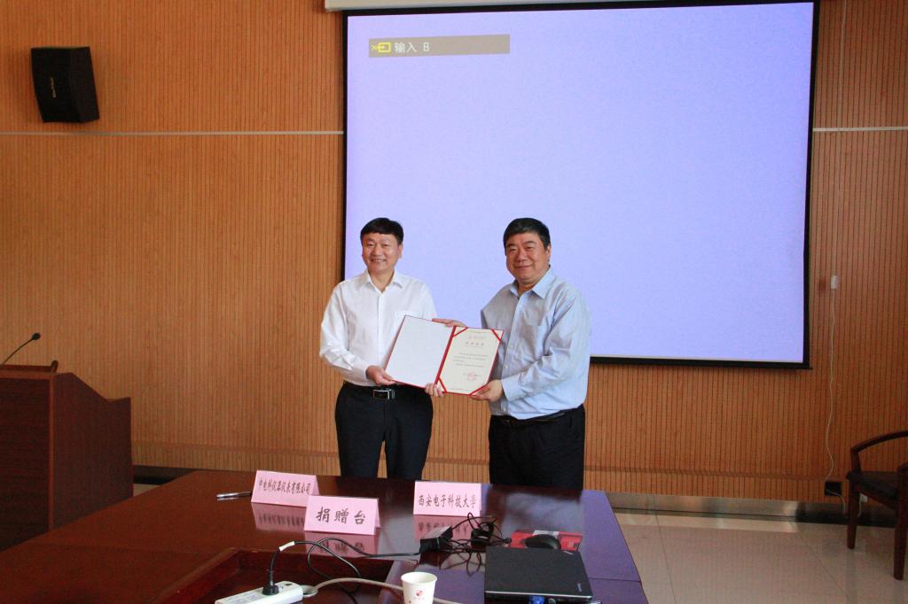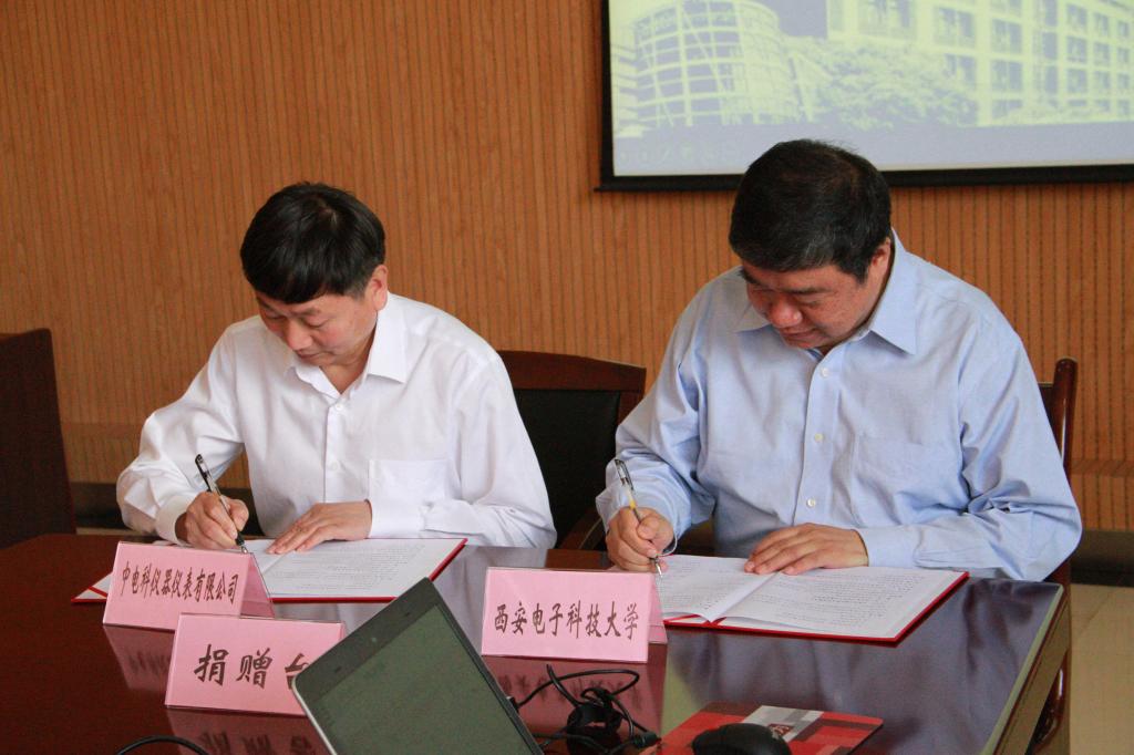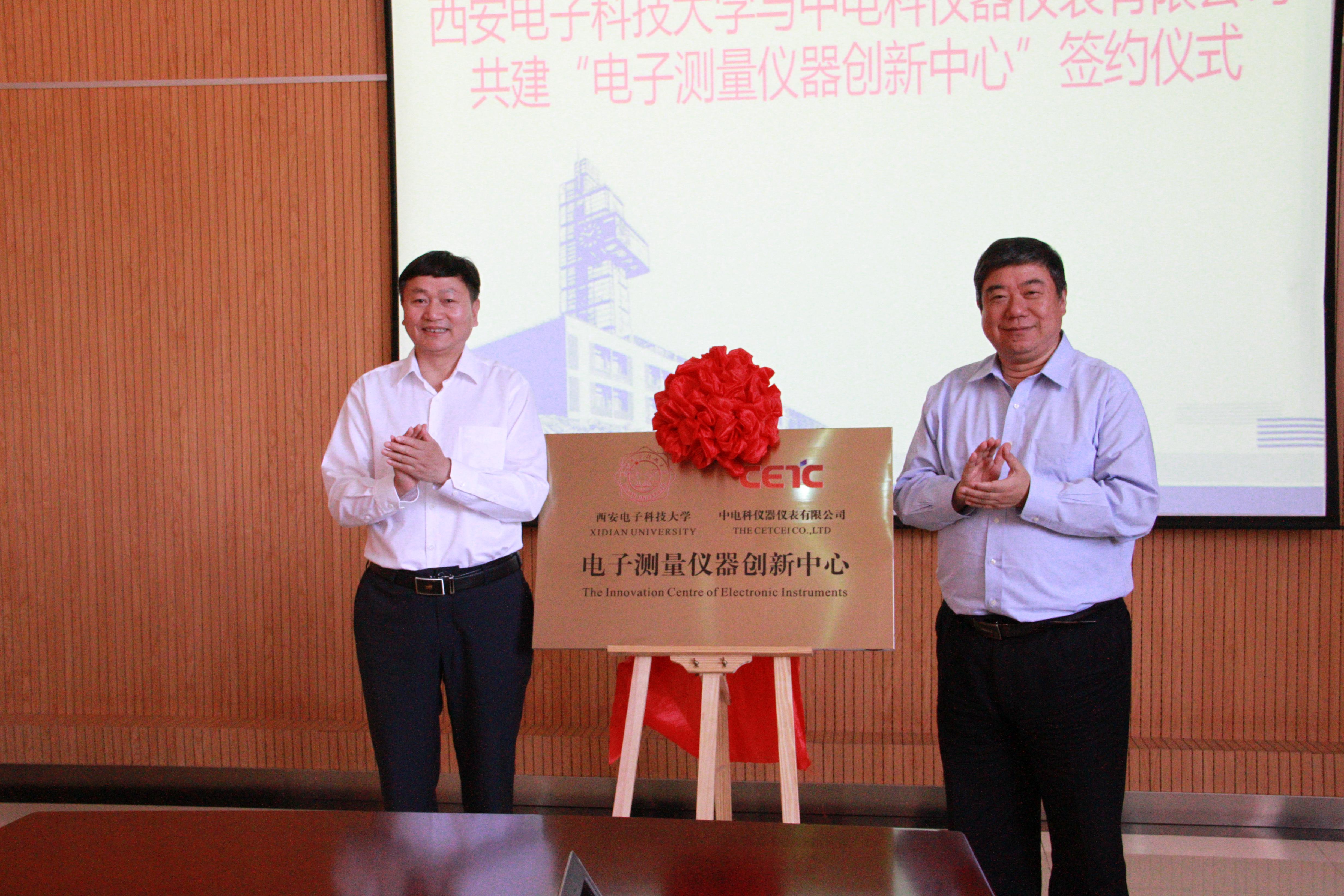 西电新闻网讯(通讯员葛持恒)5月25日上午,由西安电子科技大学、中电科仪器仪表有限公司共建的电子测量仪器创新中心签约暨揭牌仪式在西安电子科技大学北校区科技楼协同创新中心会议室隆重举行。西安电子科技大学副校长杨银堂、中电科仪器仪表有限公司副总经理许建华共同为创新中心揭牌。