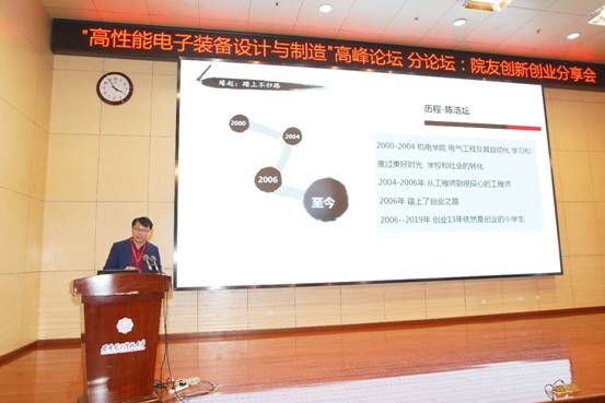 在南校区行政楼210报告厅举办“高性能电子装备设计与制造”高峰论坛分论坛——院友创新创业分享会,上海捷盟信息科技有限公司董事长李亚洲、上海易清智觉自动化科技有限公司联合创始人兼总经理王仁杰、上海思依暄机器人科技股份有限公司董事长陈浩坛作为报告嘉宾分享了他们的创业历程,启发同学们关于人生规划和创新创业等问题的思考。分享会由金星娱乐城