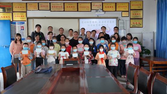 在龙池镇中心小学的会议室里,电气工程系的系主任明正峰和党支部书记诸文智为二十名品学兼优的贫困学生赠送了老师们精心制作的六一贺卡和一万元助学金,鼓励孩子们勤奋学习,不辜负社会和学校对他们的关爱和支持,用知识改变自己的人生。