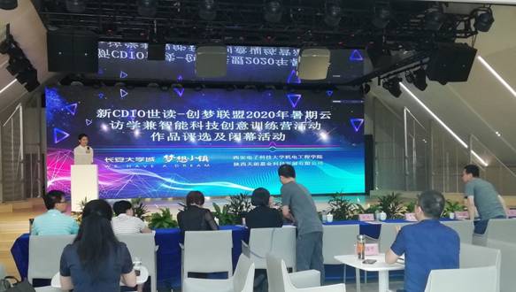 携手陕西天朗嘉业科技发展有限公司在长安大学城梦想小镇会客厅隆重举行了新CDIO世读-创梦联盟2020年暑期云访学兼智能科技创意训练营活动作品评选与闭幕式。