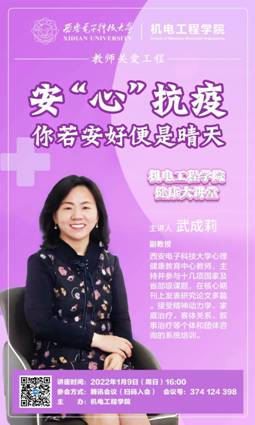 于2021年10月启动实施教师关爱工程,包含教师权益保障工程、职业成长工程、强身健体工程和真情暖心工程四大工程。“健康大讲堂”作为学院教师关爱工程的重要载体活动,第三期讲座邀请到学校心理健康教育中心武成莉副教授为教职工开展题为《安“心”抗疫——你若安好便是晴天》的讲座,帮助学院师生稳定负面情绪,同心抗疫,共克时艰,静待长安春暖花开。
