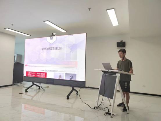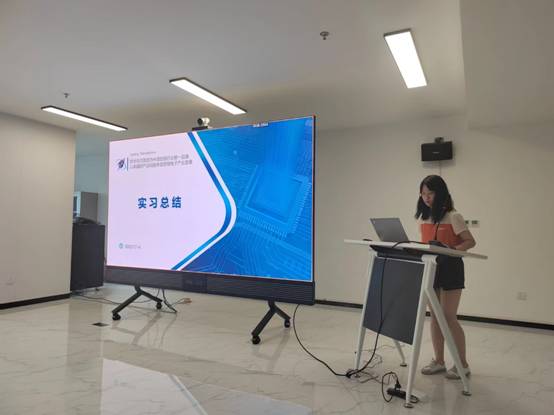 学生代表张硕和温馨怡进行了实习汇报。张硕同学介绍了他在华羿微电的实习生活,对生产线指导老师的敬业精神表示由衷的钦佩,并对他在实习期间对功率器件热阻测试技术相关的原理和仿真进行了介绍。温馨怡同学分享了她在华天科技实习期间在芯片测试和公司管理相关的收获,通过实际的产线实践,对芯片测试方法、原理以及装备都有了全新的认识,体会到了专业规范的企业管理知识,并对华天科技筚路蓝缕的创业历程致以崇高的敬意。
