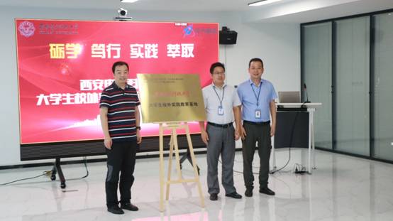 副院长陈晓龙与华天科技有限公司相关领导共同为“西安电子科技大学--大学生校外实践教育基地”揭牌。