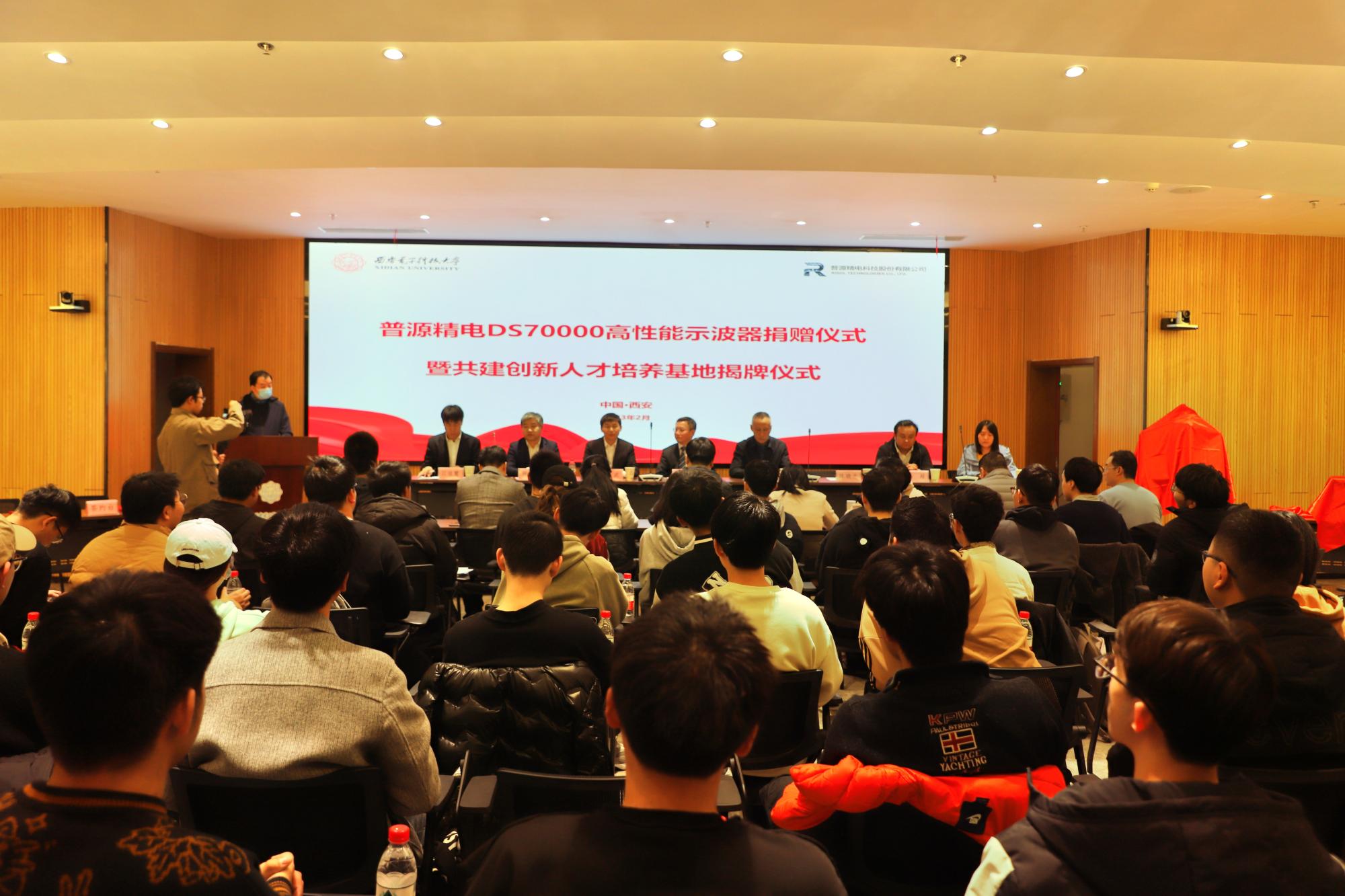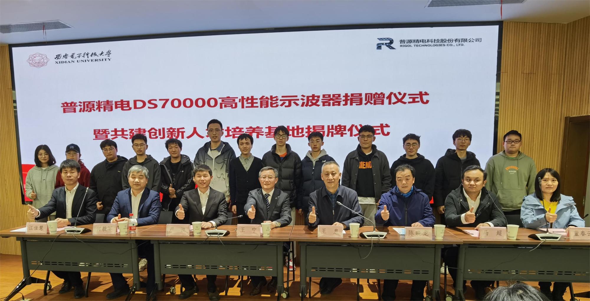 与普源精电科技股份有限公司在南校区会议中心103会议室举行了仪器捐赠暨创新人才培养基地揭牌仪式。普源精电科技股份有限公司董事、总经理王宁,首席技术官严波,北京研发总监何毅军,教育计划经理江佳慧,销售经理马超,西安电子科技大学副校长王泉,金星娱乐城