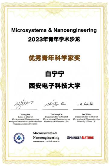 微纳机电系统研究中心青年教师白宁宁凭借其突出的研究成果和学术贡献,荣获“2023 MINE优秀青年科学家奖”。