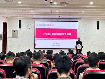 在北校区主楼召开全院教职工大会,会议传达了学校2023年下半年工作会议要求,安排部署了学院下半年重点工作。学院党政班子成员和全体教职工参加了会议,会议由学院党委副书记、纪委书记陈武主持。
