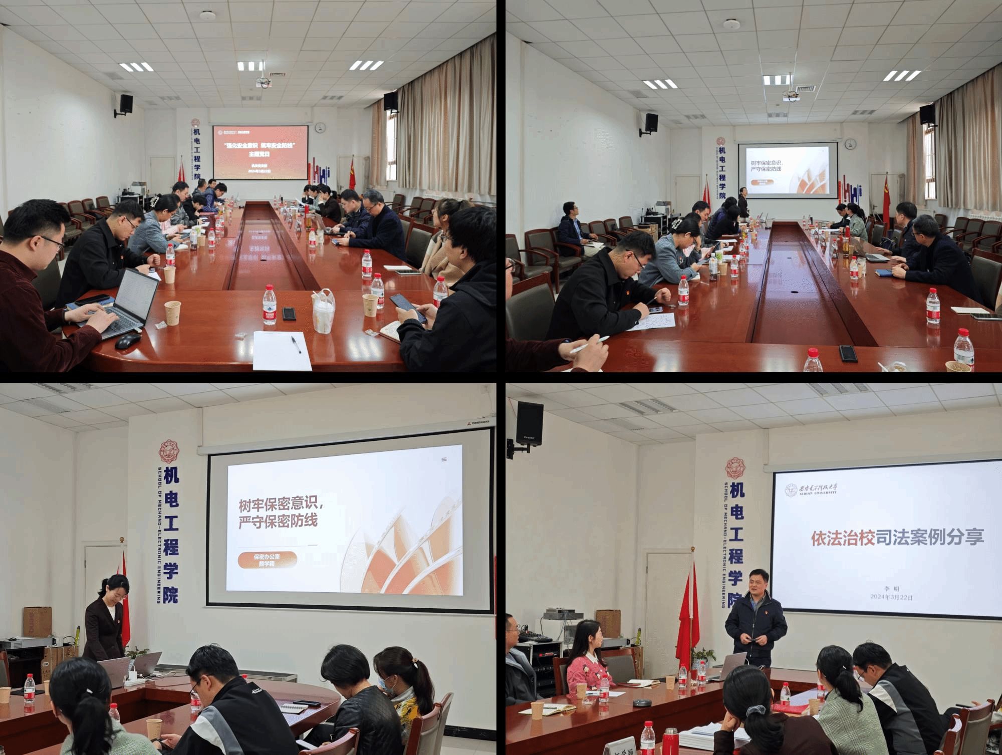 紧接着开展专题报告学习。科学研究院保密办公室主任颜学颖和科学研究院副院长兼保密办公室副主任、国家安全人民防线领导小组办公室副主任杨卫亚结合大量高校案例,通过法律条文解读,围绕如何做好高校保密工作进行了系统深入的讲解。保密工作是一项基础性、全局性、长期性工作,要充分认识做好保密工作的重要性,始终绷紧保密风险弦,强化组织领导,筑牢保密防线,全面落实保密工作责任制,强化全过程管理,加强网络平台、新媒体等互联网管理,严格把关,坚决做到“涉密不上网、上网不涉密”。法务办公室主任、国家安全人民防线领导小组办公室主任李明作了题为《依法治校司法案例分享》的专题报告,他结合工作实际,从多个角度、多个案例深入浅出地阐述了高校工作者增强法律意识和法治观念,开展依法治校工作的必要性。