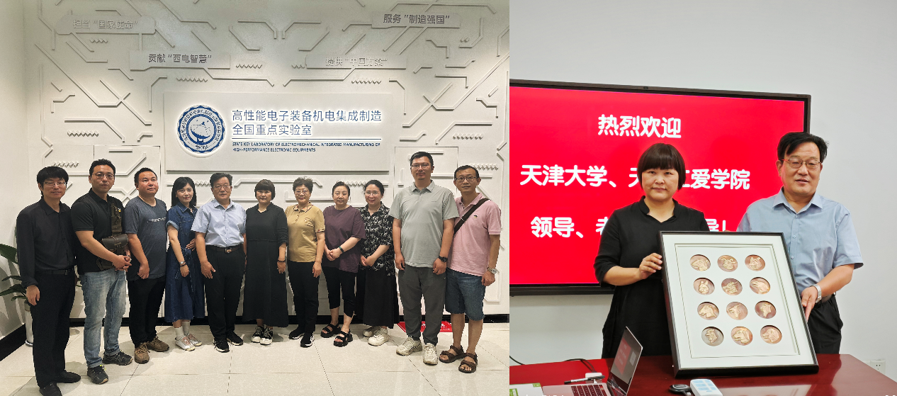 参观结束后,天津大学英才教授、天津仁爱学院数智传媒与设计艺术学院院长郭伟代表仁爱学院向计算机辅助设计与制造团队赠送了圆明园手工铜浮雕十二兽首文创产品。与会代表合影留念,交流座谈圆满结束。