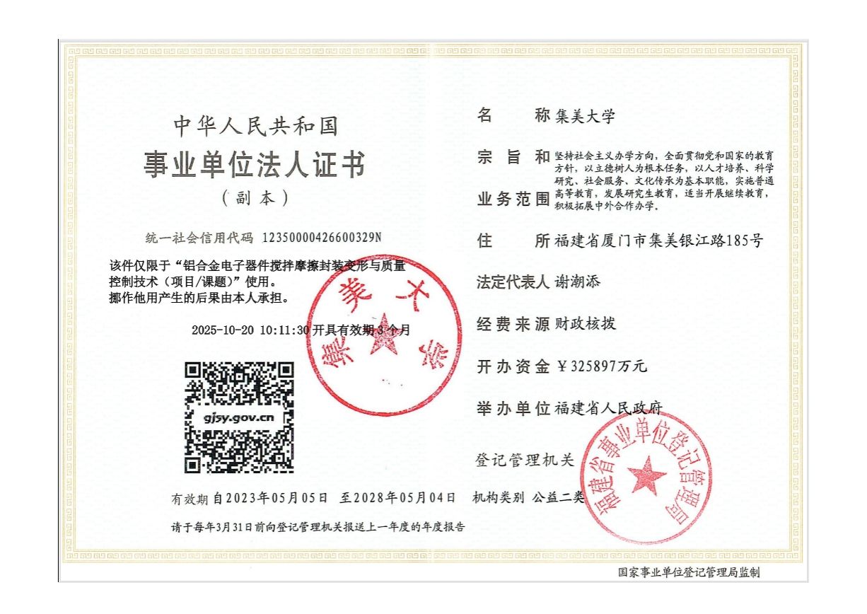 按照《西安电子科技大学科研协作项目管理办法(试行)》文件规定,为加强学校科研协作项目的管理,确保高性能集成制造实验室电子装备特种制造技术研究的顺利进行。集美大学与项目负责人李楠将开展科研合作,现将合作相关事项公示如下: