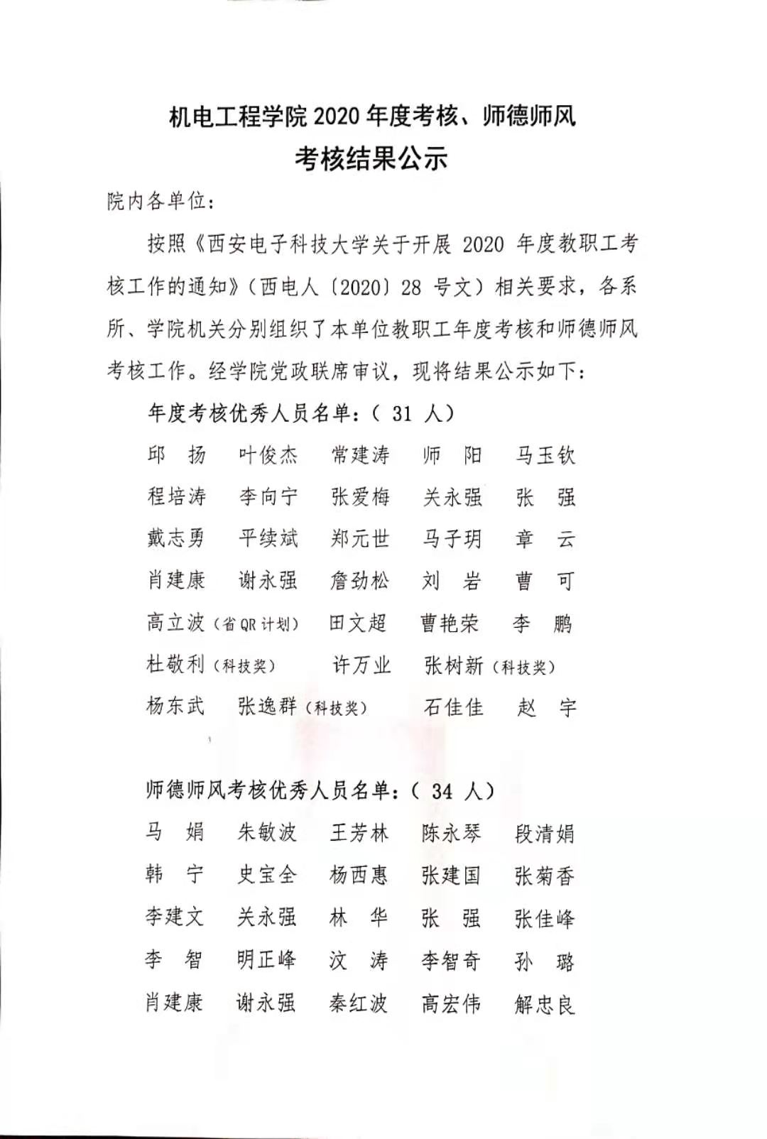 金星娱乐城 2020年度考核、师德师风考核结果公示