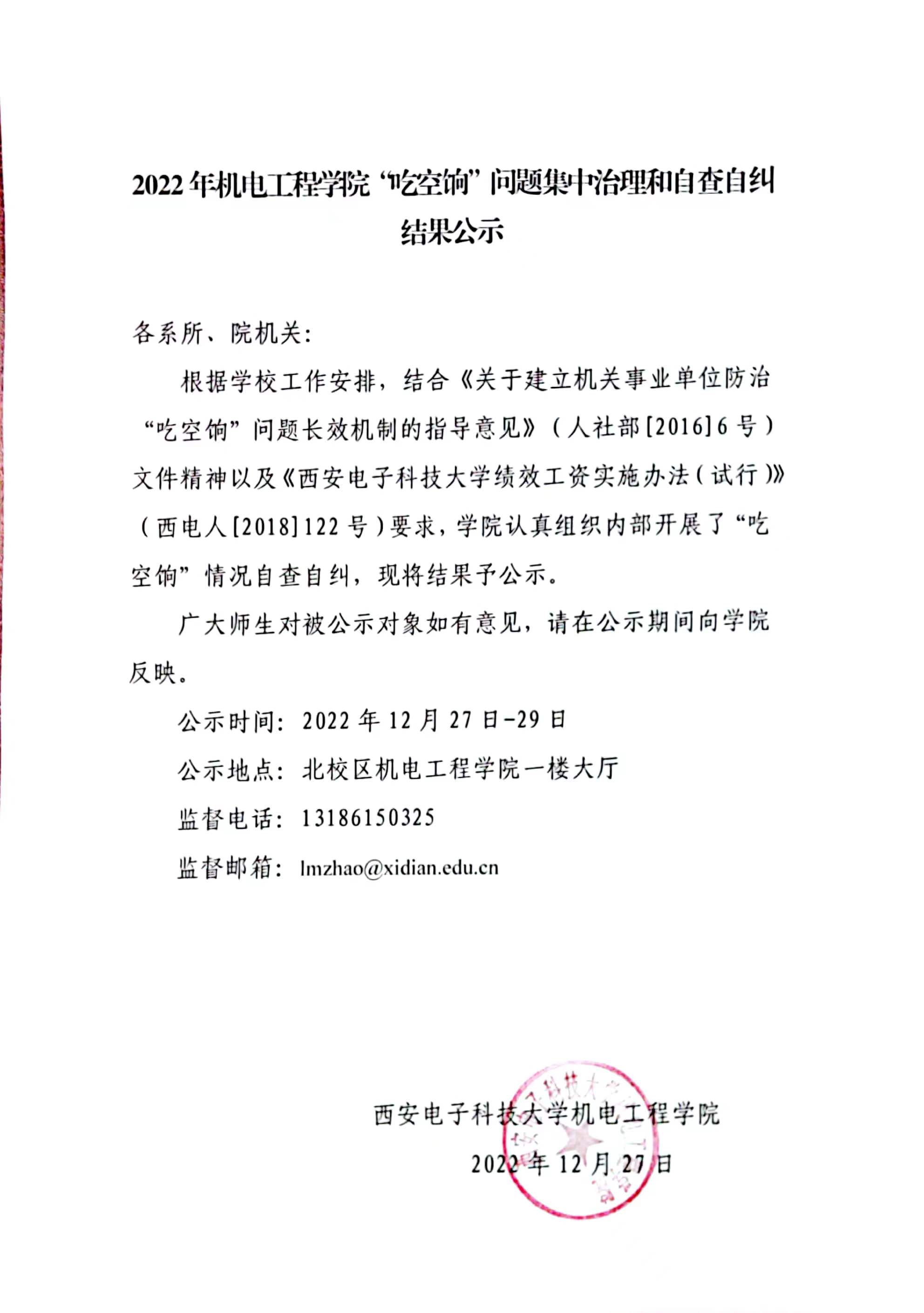 2022年金星娱乐城 “吃空饷”问题集中治理和自查自纠结果公示