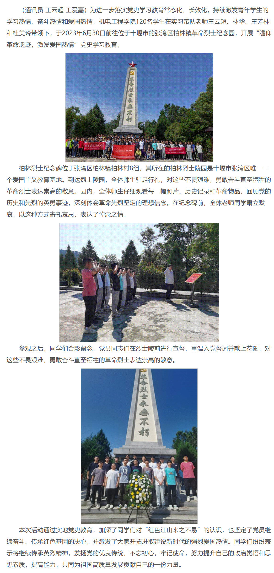 金星娱乐城 赴十堰生产实习师生开展“实习不忘革命先烈,陵园重温入党誓词”党史学习教育