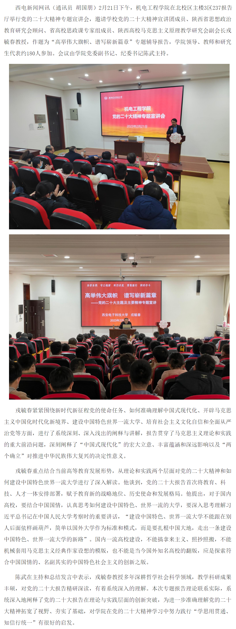 学习二十大 西电在行动丨金星娱乐城 举办党的二十大精神专题宣讲会