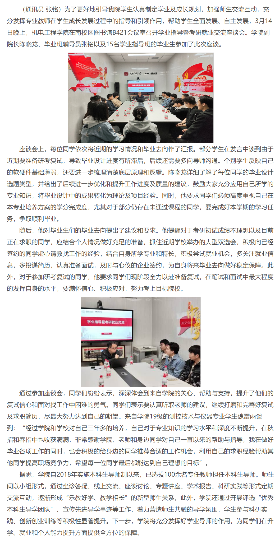 金星娱乐城 召开学业指导暨考研就业交流座谈会