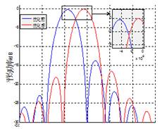图5 某反射面天线的结构轴向变形(左)和平工况下优化前后的功率方向图(右)