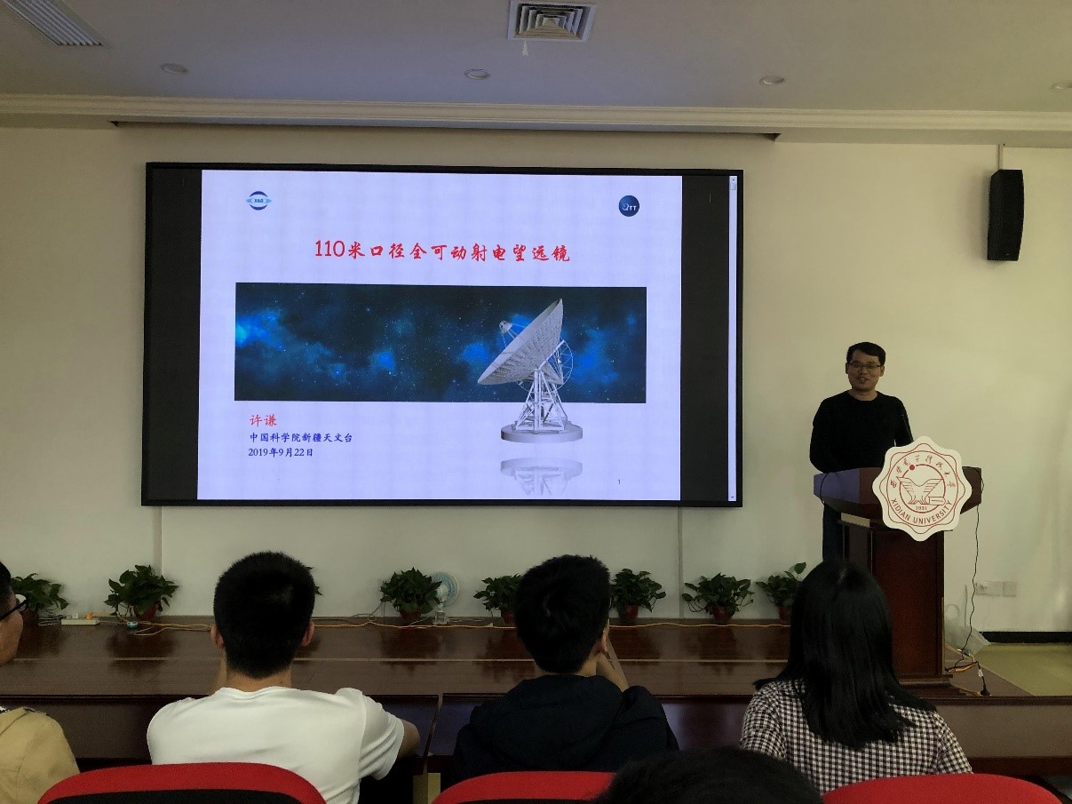 师生作“新疆110米口径全可动射电望远镜”报告会,本场报告会在北校区主楼III区“菲声493”学术报告厅举行。
