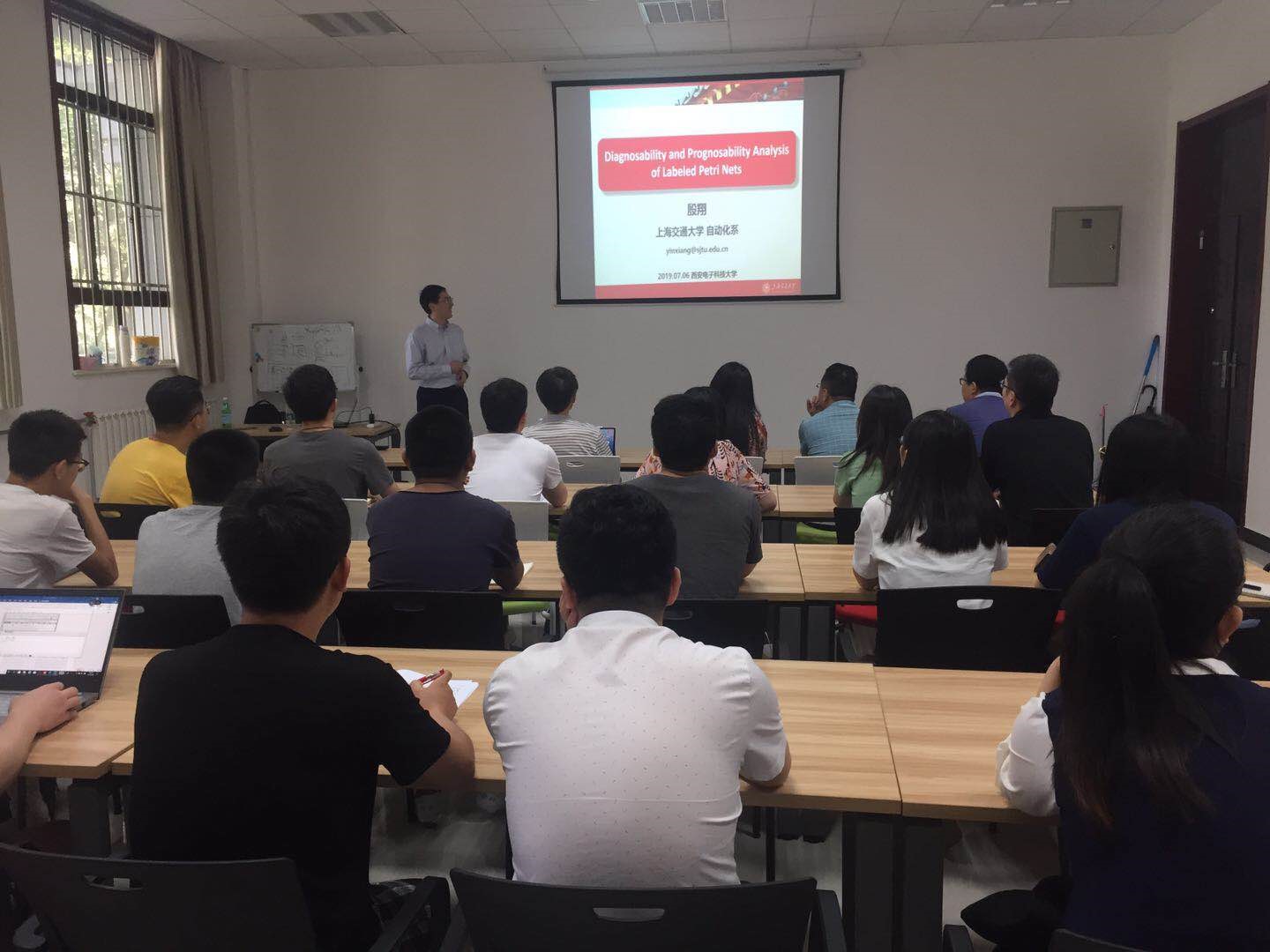 系统控制与自动化研究团队邀请,离散事件系统监督控制领域专家、上海交通大学殷翔副教授来学校访问。7月6日下午殷翔副教授在北校区主楼三区143学术报告厅作了题为《Diagnosability and Prognosability Analysis of Labeled Petri Nets》的学术报告。