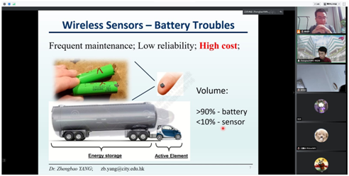 与香港城市大学机械工程系的科研合作与学术交流,在教育部“万人计划”项目资助下,应微纳机电系统研究中心的邀请,香港城市大学杨征保助理教授以《Smart Materials and Structures for Sensors and Energy Harvesters》为题作线上报告,西安电子科技大学和香港城市大学80余名师生参加了此次交流报告会。研究中心的樊康旗副教授主持了会议。