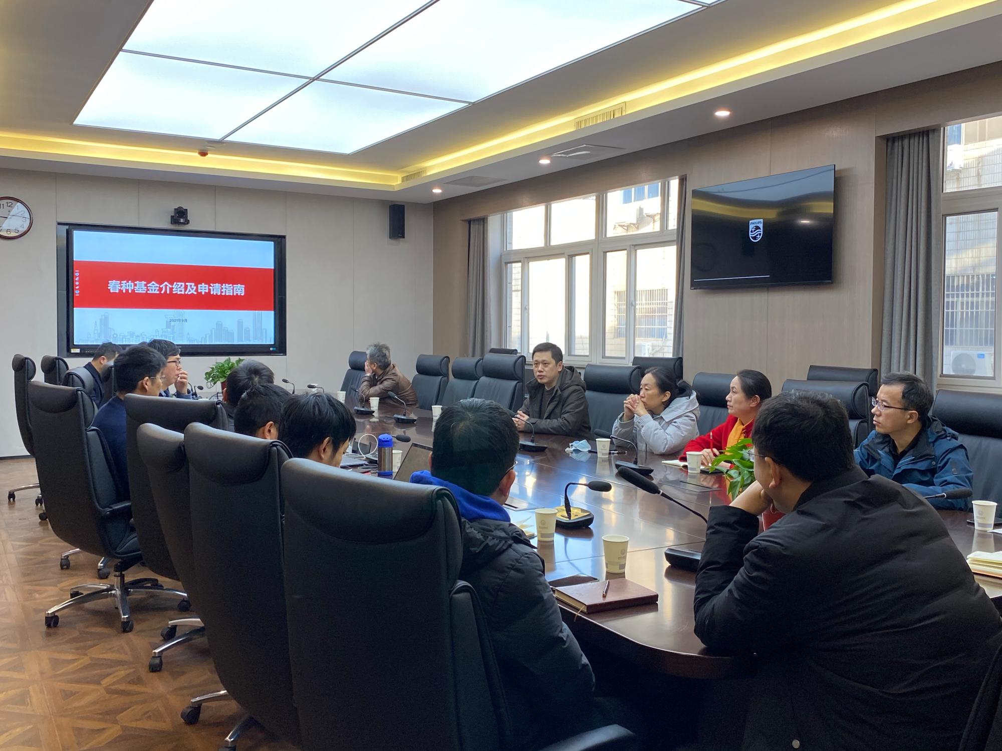 邀请秦创原春种基金项目投资运营办公室负责人王晖部长、基金投资经理郑敬地等人,在北校区会议中心203室召开秦创原春种基金政策及申报宣讲会,学院科研副院长王从思及相关科研团队等20余人参加会议,会议由王从思主持。
