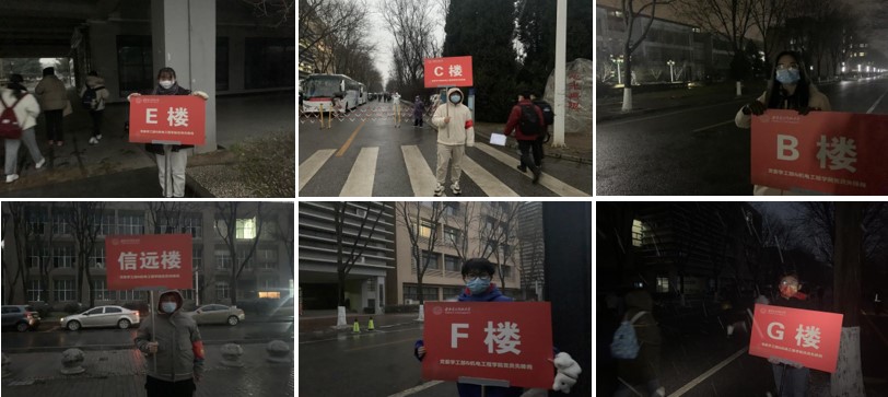 “青年先锋队”转移工作场地、更新工作任务,手持引导牌,热情洋溢地招呼刚刚从考场出来的考生们,引导大家到人数较少的竹园餐厅就餐。志愿者们在寒风中多站一会儿,考生们就能早就餐多休息一会儿,最终大家圆满完成任务,收获满满。学生党员周楠同学表示,“考研是一场无数人的征途,日后我们也会像他们一样迎风而上,追寻梦想的脚步,这一切,不仅是为了战场上的他们,也是为了奋斗中的我们,向奋斗中的学长学姐致敬!”纪宇恒同学表示:“看到考研的学长学姐们拼搏的样子很感动,作为一名党员,很幸运为她们的考研路做一点贡献。”