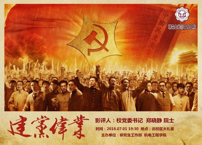 承办的“研究生光影文化之旅”系列电影放映活动之一电影《建党伟业》在北校区文化活动中心放映。学院领导班子成员、部分教师党员和学生党员集体观看影片,校党委书记郑晓静院士出席并发表讲话。