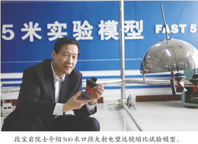 段宝岩团队研究的就是机电耦合的高性能“柔性”电子装备。天文学研究需要大口径天线,因为口径越大看得越远,而口径越大重量越重,需要的支撑底座也就更重。全可动天线理论口径极限为100米到150米,FAST口径达500米,倘若采取刚性支撑,其馈源舱的重量将达万吨,无论是从造价还是稳定性,都是一件很难想象的事情。