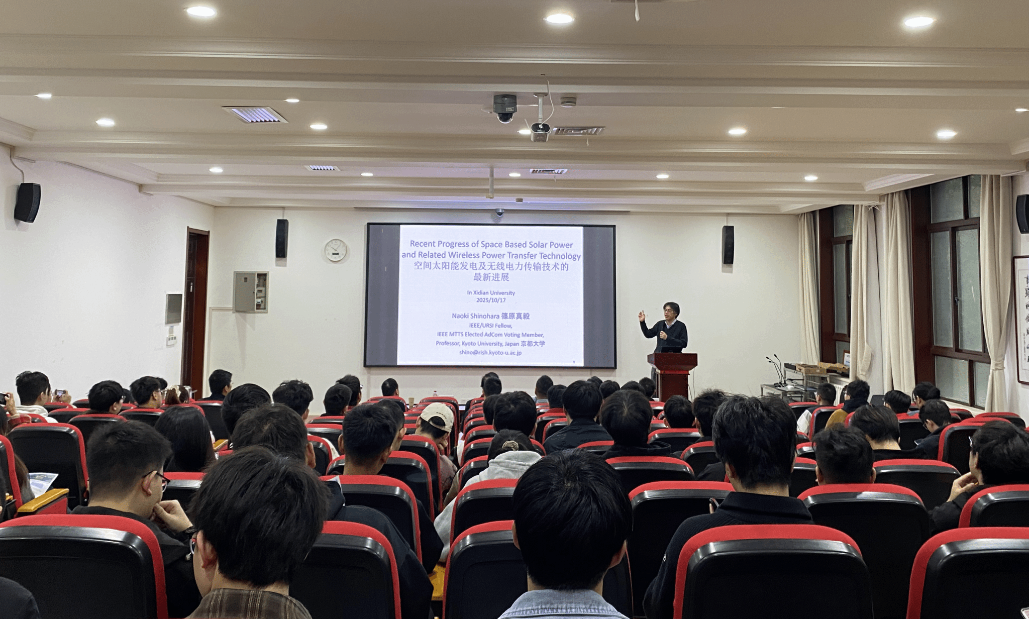 电子装备机电耦合实验室邀请,日本京都大学知名学者Naoki Shinohara教授在北校区主楼III-237报告厅作题为《Space Solar Power Station and Microwave Wireless Power Transmission technologies》的学术报告。中国工程院院士段宝岩教授,校人才办主任李龙教授,国家级青年人才杨波教授,以及120余名师生参加报告会。会议由李鹏教授主持。