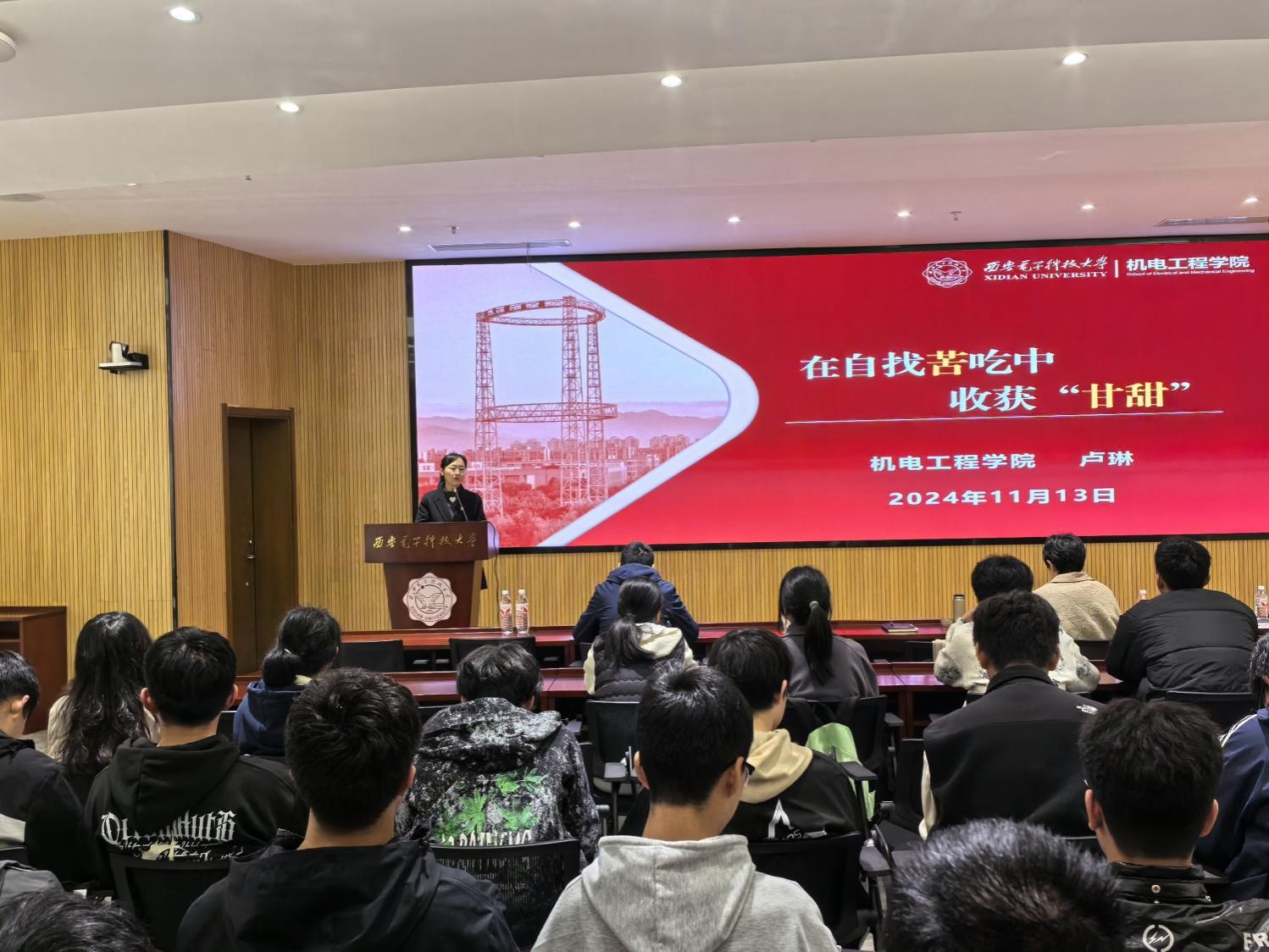 学院副院长、机关党支部书记卢琳为同学们带来题为《在自找苦吃中收获“甘甜”》的主题党课,以大学生活为切入点,引导同学们思考如何度过这一关键阶段。她引用习近平总书记在知青时期践行“自找苦吃”并推动梁家河“沼气革命”的事迹,鼓励大家在党的二十届三中全会精神的指引下,响应习近平总书记的号召,继承和发扬吃苦耐劳、自力更生、艰苦奋斗的精神。她回顾了老一辈西电人开拓通信事业的辉煌历程,展示了机电人面向国家重大需求开展坚苦卓绝的攻关取得的重大成就,激励同学们积极面对“有苦吃”的磨砺,从而培养“能吃苦”的品质,并将个人理想融入集体的使命,以行动践行新时代赋予的责任。卢琳结合自身经历,悉心指导同学们科学规划大学学习与生活,平衡学业进步与身心健康,为未来挑战做好准备。