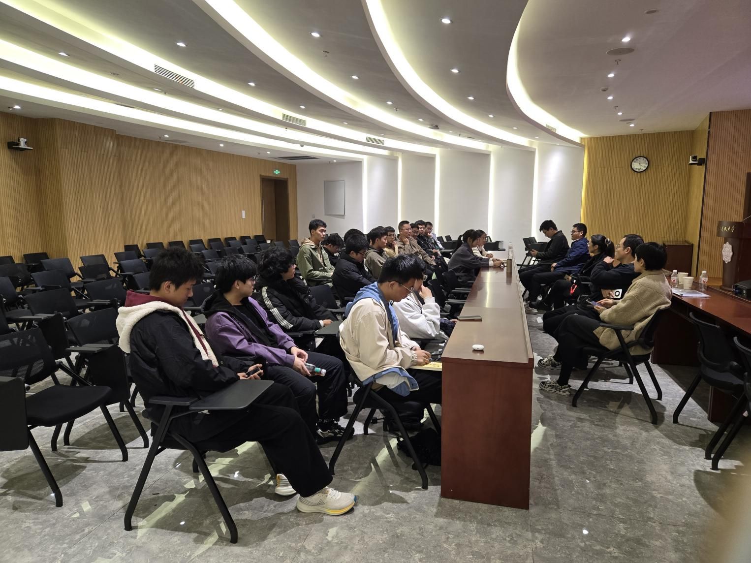 按照学院党委要求,学院机关为240410班选派了王飞、陈朝晖、赵宇和苏楠四位老师担任新生班主任。四位老师分别介绍了各自的分管业务、办公地点和联系方式等,并热情邀请同学们在空闲时间多到办公室交流,与老师们加强沟通。他们从自身的经验与经历出发,结合同学们所处的阶段和曾经的带班经历,鼓励同学们树立自己的人生目标,从认真上好每堂课,独立按时完成每天的作业开始,不畏吃苦,拒绝躺平,进而实现自己的目标。结合刚刚结束的期中考试,班主任与各位同学分享了学习方法,分析了个别同学成绩不理想的原因,提出了改进的方法,初步策划了后续班主任指导对接班级和个别同学的方式。